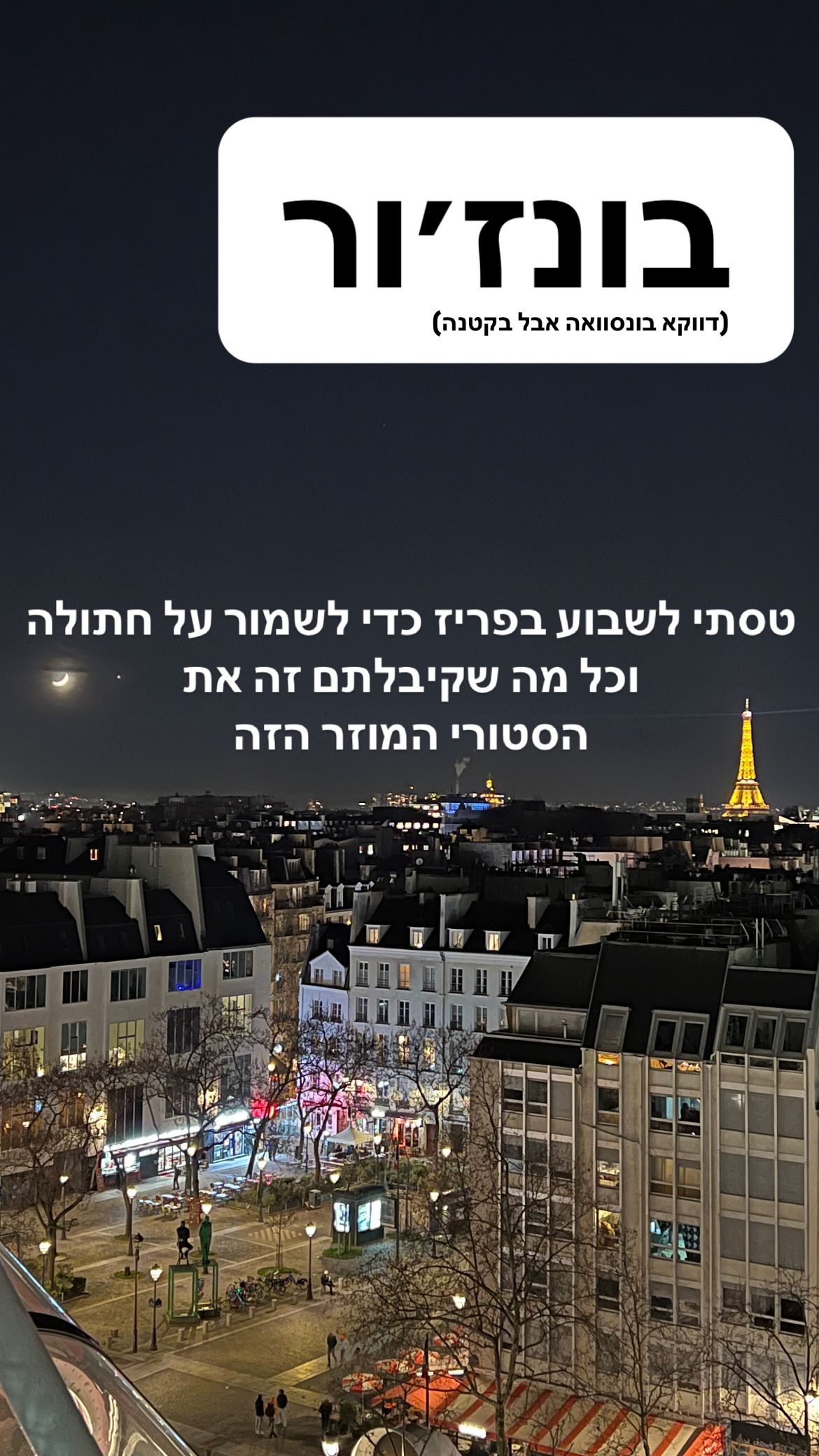 בדצמבר 2024 הציעו לחברים לשמור על חתולה בפאתי פריז והם הציעו לי להצטרף. להלן סטורי